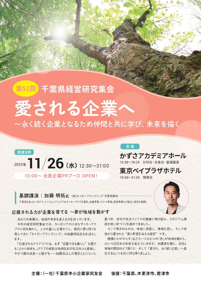 千葉県中小企業家同友会が主催する「第51回 千葉県経営研究集会」において、第3分科会(障がい者雇用・多様な働き方)の報告者として登壇しました。