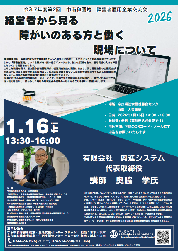 「令和7年度第2回 中南和圏域 障害者雇用企業交流会」に登壇し、経営者の立場から、障がいのある方と働く現場について講師を務めました。