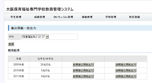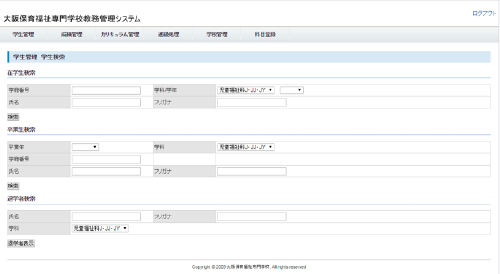 専門学校のカリキュラム・学生・成績の管理システムです。