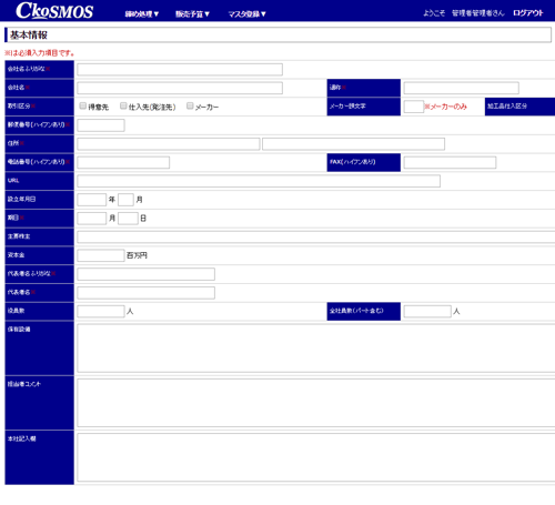 フィルム原紙、フィルム加工品の販売管理システムです。